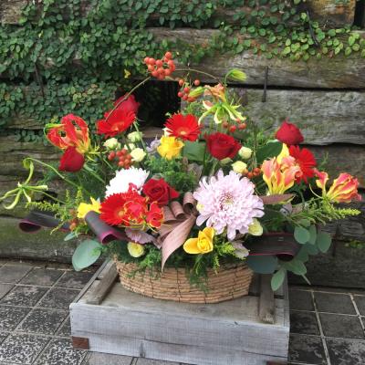 【お祝い花】プロにおまかせ ブーケ「赤系」3,850円