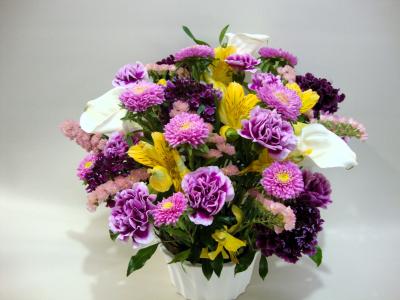 トルコギキョウ入れたピンク・パープル系おまかせアレンジ
