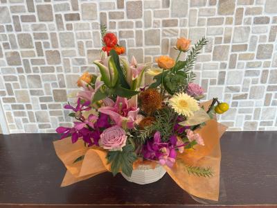 【お祝い花】プロにおまかせ アレンジメント「黄色・オレンジ系」3,850円
