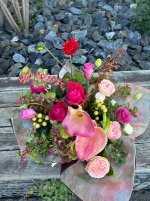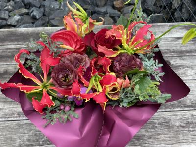 【お祝い花】プロにおまかせ ブーケ「赤系」3,850円