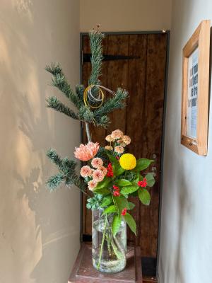白菊と松のアレンジメント