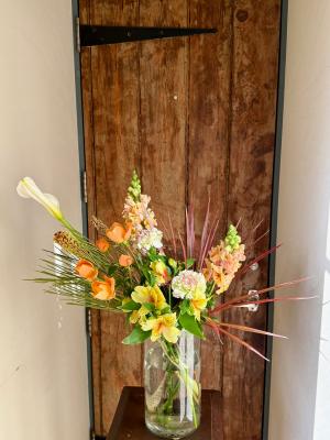 オレンジバラ入れたオレンジ・イエロー系おまかせアレンジ