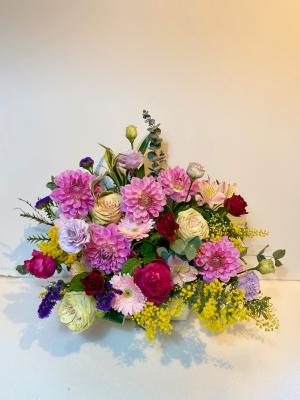 トルコギキョウ入れたピンク・パープル系おまかせアレンジ