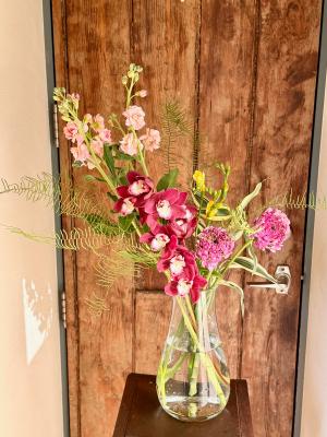 ピンクバラを入れたピンク系おまかせアレンジ