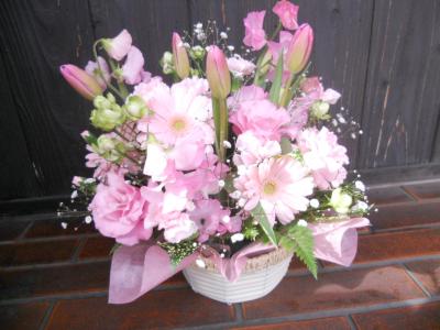 ピンクユリを入れたピンク系おまかせアレンジ
