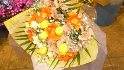 【お祝い花】プロにおまかせ豪華 ブーケ「黄色・オレンジ系」11,000円