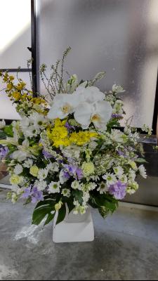 【お祝い花】プロにおまかせ 豪華アレンジメント「黄色・オレンジ系」