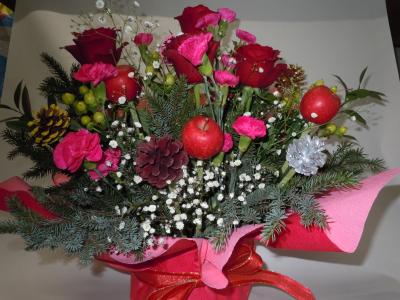 トルコギキョウとカーネーションの迎春アレンジメント