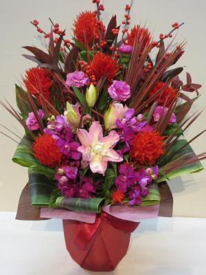 【お祝い花】プロにおまかせ ブーケ「赤系」3,850円
