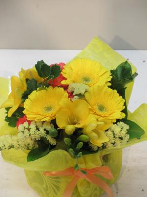 【お祝い花】プロにおまかせ豪華 ブーケ「黄色・オレンジ系」11,000円