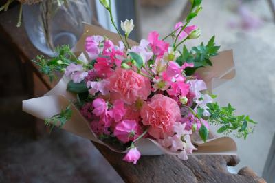 トルコギキョウ入れたピンク・パープル系おまかせアレンジ
