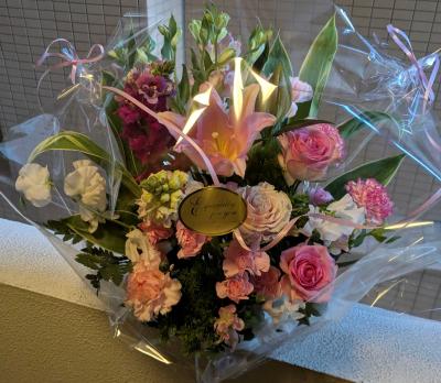 ピンクバラを入れたピンク系おまかせアレンジ