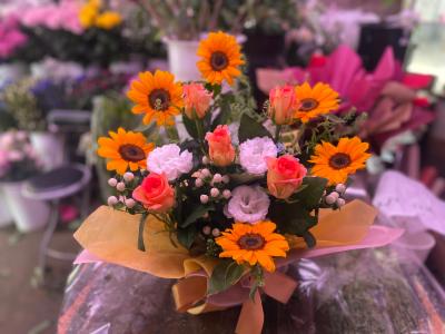 【お祝い花】プロにおまかせ アレンジメント「黄色・オレンジ系」3,850円