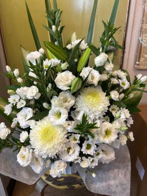 【お悔やみ・お供え】プロにおまかせ アレンジメント「白上がり」3,850円