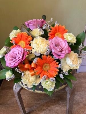 オレンジバラ入れたオレンジ・イエロー系おまかせアレンジ〜2025新商品〜