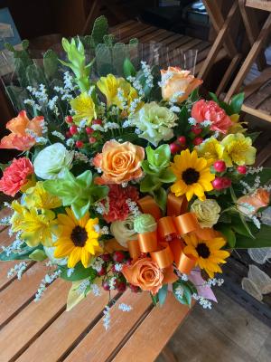 【お祝い花】プロにおまかせ アレンジメント「黄色・オレンジ系」3,850円