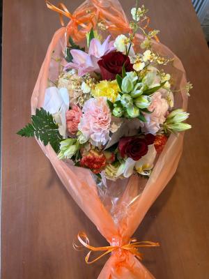 【お祝い花】プロにおまかせ アレンジメント「黄色・オレンジ系」3,850円