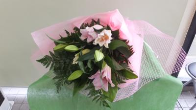 トルコギキョウ入れたピンク・パープル系おまかせアレンジ