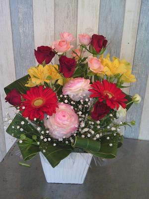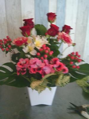 【お祝い花】プロにおまかせ アレンジメント「赤系」3,850円