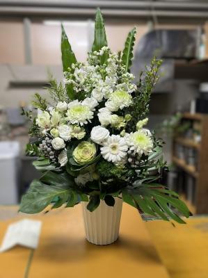 【お悔やみ・お供え】プロにおまかせ アレンジメント「白上がり」3,850円