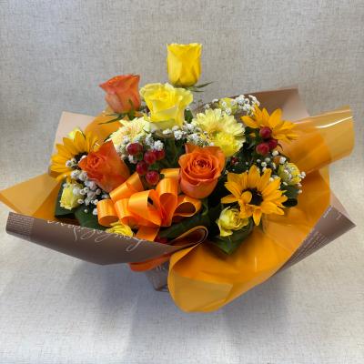 【お祝い花】プロにおまかせ アレンジメント「黄色・オレンジ系」3,850円