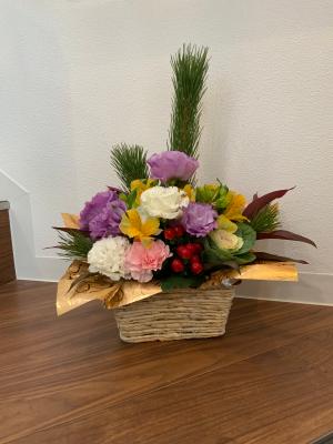 トルコギキョウとカーネーションの迎春アレンジメント