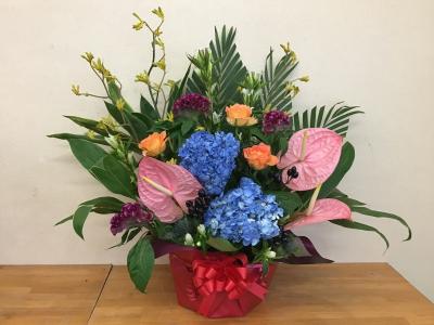 【お祝い花】プロにおまかせ アレンジメント「赤系」3,850円