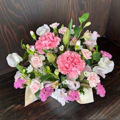 トルコギキョウ入れたピンク・パープル系おまかせアレンジ