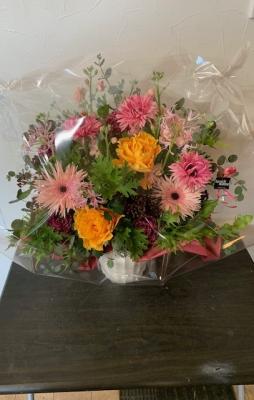 【お祝い花】プロにおまかせ アレンジメント「黄色・オレンジ系」3,850円