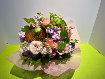 【お祝い花】プロにおまかせ ブーケ「赤系」3,850円