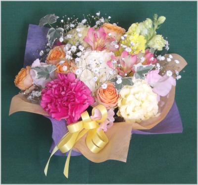 トルコギキョウ入れたピンク・パープル系おまかせアレンジ