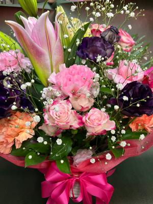 【お祝い花】プロにおまかせ ブーケ「赤系」3,850円