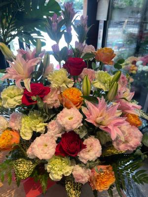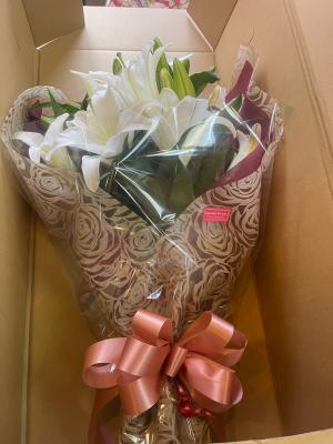 ボリューム満点!ユリとバラのゴージャスな花束
