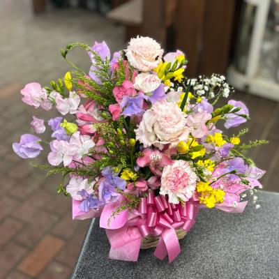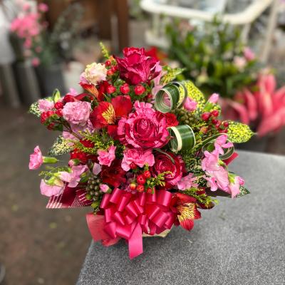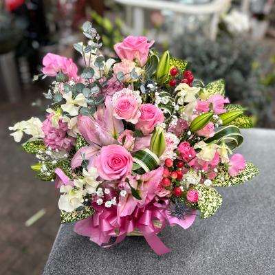 ピンクバラを入れたピンク系おまかせアレンジ