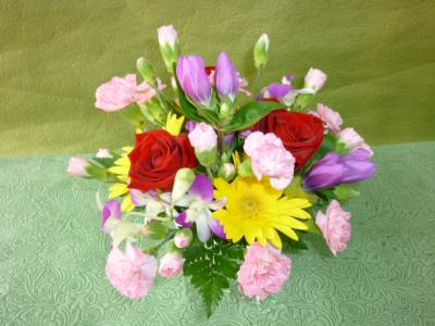【お祝い花】プロにおまかせ アレンジメント「赤系」3,850円