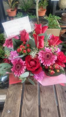 【お祝い花】プロにおまかせ アレンジメント「赤系」3,850円