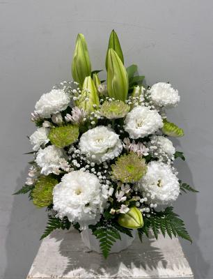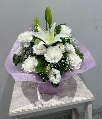 【お悔やみ・お供え】プロにおまかせ アレンジメント「白上がり」3,850円