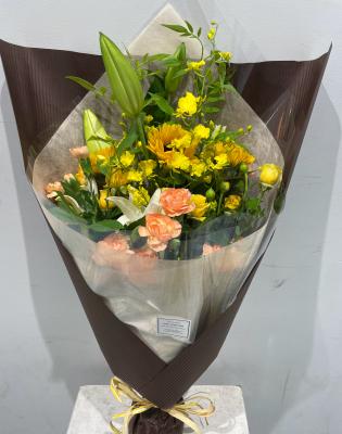 【お祝い花】プロにおまかせ アレンジメント「黄色・オレンジ系」3,850円