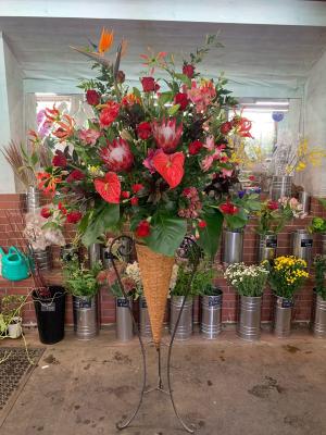 【お祝い花】プロにおまかせ アレンジメント「赤系」3,850円