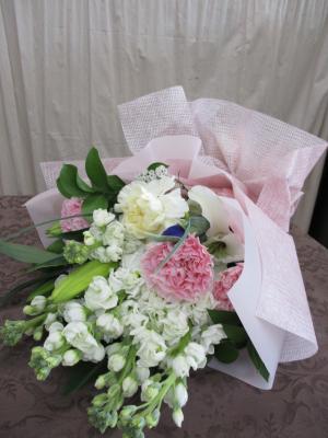 トルコギキョウ入れたピンク・パープル系おまかせアレンジ