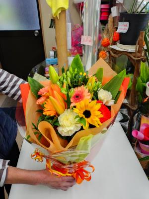 【お祝い花】プロにおまかせ豪華 ブーケ「黄色・オレンジ系」11,000円