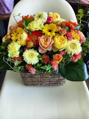 【お祝い花】プロにおまかせ アレンジメント「黄色・オレンジ系」3,850円