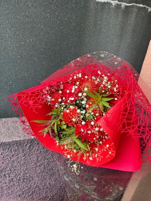 【お祝い花】プロにおまかせ ブーケ「赤系」3,850円
