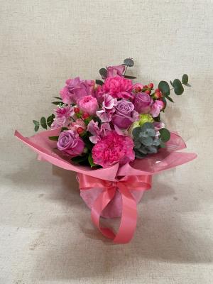ピンクバラを入れたピンク系おまかせアレンジ