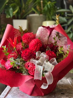 【お祝い花】プロにおまかせ 豪華ブーケ「赤系」11,000円