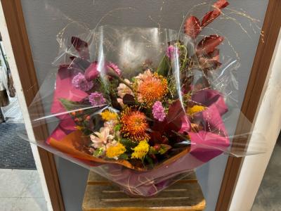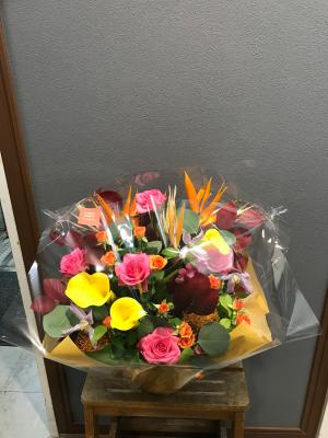 【お祝い花】プロにおまかせ ブーケ「赤系」3,850円