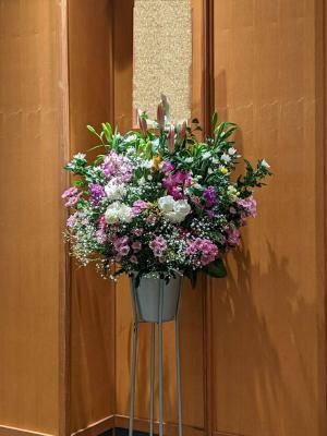 トルコギキョウ入れたピンク・パープル系おまかせアレンジ