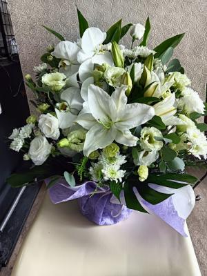 【お悔やみ・お供え】プロにおまかせ アレンジメント「白上がり」3,850円