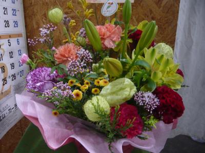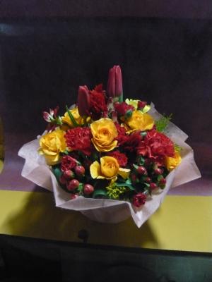 【お祝い花】プロにおまかせ ブーケ「赤系」3,850円