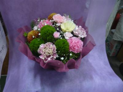 トルコギキョウとカーネーションの迎春アレンジメント